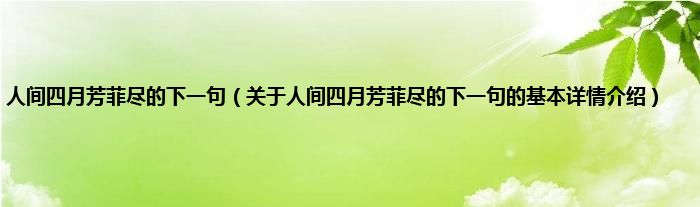 本文关于人间四月芳菲尽的下一句的基本详情介绍就讲解完毕,希望对大家有所帮助。