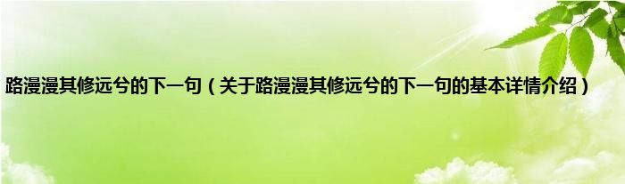 本文关于路漫漫其修远兮的下一句的基本详情介绍就讲解完毕,希望对大家有所帮助。