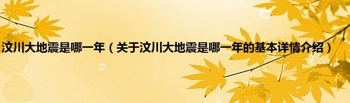 本文关于汶川大地震是哪一年的基本详情介绍就讲解完毕,希望对大家有所帮助。
