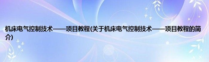 本文关于机床电气控制技术——项目教程的简介就讲解完毕,希望对大家有所帮助。