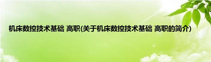 机床数控技术基础 高职(关于机床数控技术基础 高职的简介)