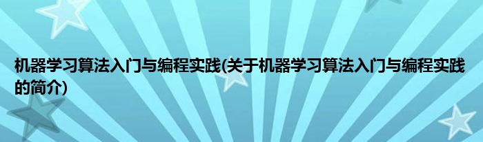 大家好,机器学习算法入门与编程实践,关于机器学习算法入门与编程实践的简介很多人还不知道,现在让我们一起来看看吧!