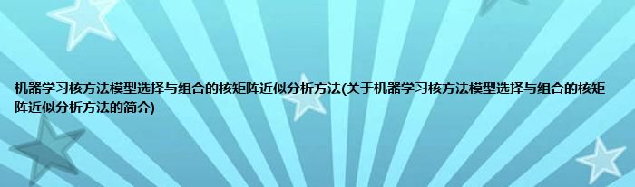 机器学习核方法模型选择与组合的核矩阵近似分析方法(关于机器学习核方法模型选择与组合的核矩阵近似分析方法的简介)