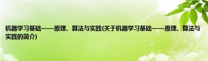 大家好,机器学习基础——原理、算法与实践,关于机器学习基础——原理、算法与实践的简介很多人还不知道,现在让我们一起来看看吧!