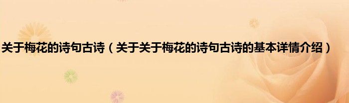 本文关于关于梅花的诗句古诗的基本详情介绍就讲解完毕,希望对大家有所帮助。