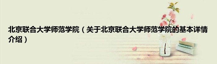 本文关于北京联合大学师范学院的基本详情介绍就讲解完毕,希望对大家有所帮助。