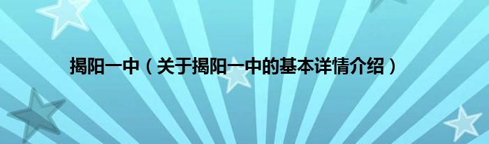 1、揭阳市第一中学(Jieyang No.1 High School),简称揭阳一中,老校区位于广东省揭阳市区北环城路中段,新校区位于揭阳市区淡浦南路。