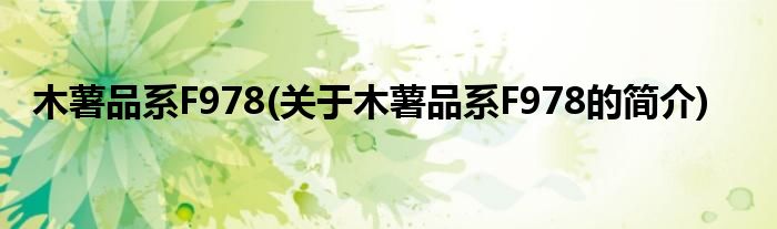 本文关于木薯品系F978的简介就讲解完毕,希望对大家有所帮助。