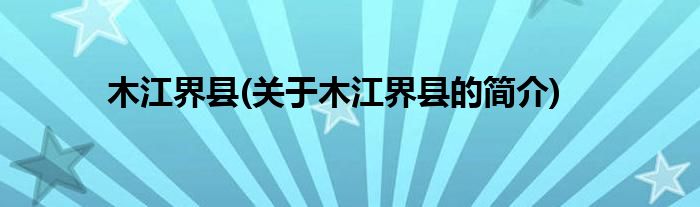 本文关于木江界县的简介就讲解完毕,希望对大家有所帮助。