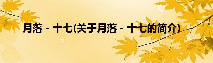 本文关于月落-十七的简介就讲解完毕,希望对大家有所帮助。