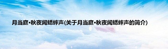本文关于月当庭·秋夜闻蟋蟀声的简介就讲解完毕,希望对大家有所帮助。