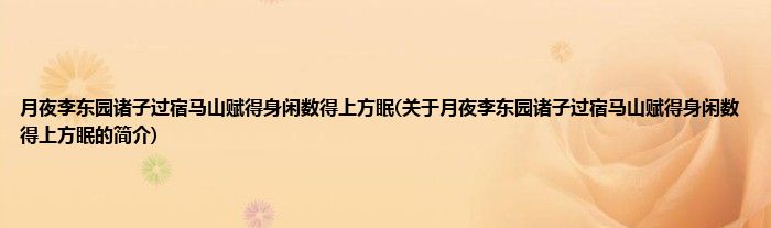 本文关于月夜李东园诸子过宿马山赋得身闲数得上方眠的简介就讲解完毕,希望对大家有所帮助。