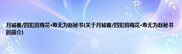 本文关于月城春/四犯剪梅花·寿无为赵秘书的简介就讲解完毕,希望对大家有所帮助。