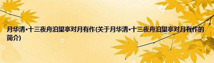 本文关于月华清·十三夜舟泊望亭对月有作的简介就讲解完毕,希望对大家有所帮助。