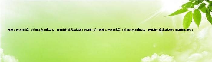 本文关于最高人民法院印发《处理涉台刑事申诉、民事案件座谈会纪要》的通知的简介就讲解完毕,希望对大家有所帮助。