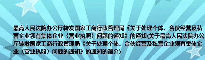 本文关于最高人民法院办公厅转发国家工商行政管理局《关于处理个体、合伙经营及私营企业领有集体企业〈营业执照〉问题的通知》的通知的简介就讲解完毕,希望对大家有所帮助。