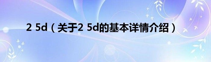 本文关于2 5d的基本详情介绍就讲解完毕,希望对大家有所帮助。