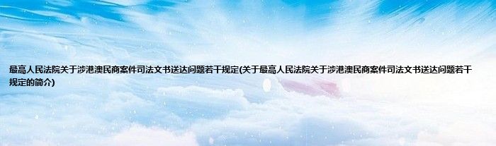 本文关于最高人民法院关于涉港澳民商案件司法文书送达问题若干规定的简介就讲解完毕,希望对大家有所帮助。