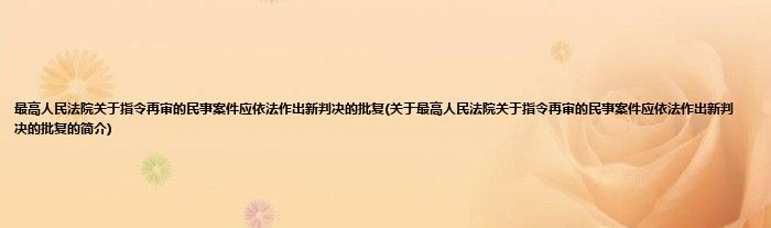 本文关于最高人民法院关于指令再审的民事案件应依法作出新判决的批复的简介就讲解完毕,希望对大家有所帮助。
