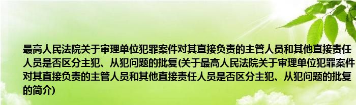 本文关于最高人民法院关于审理单位犯罪案件对其直接负责的主管人员和其他直接责任人员是否区分主犯、从犯问题的批复的简介就讲解完毕,希望对大家有所帮助。