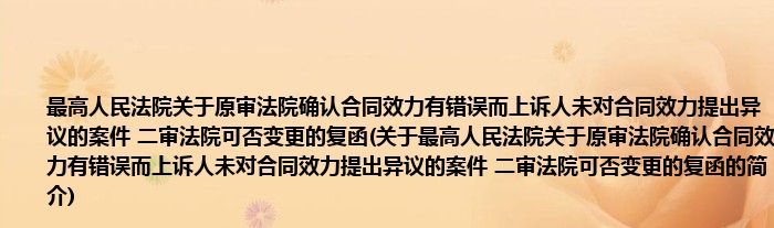 本文关于最高人民法院关于原审法院确认合同效力有错误而上诉人未对合同效力提出异议的案件,二审法院可否变更的复函的简介就讲解完毕,希望对大家有所帮助。