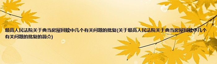 大家好,最高人民法院关于典当房屋回赎中几个有关问题的批复,关于最高人民法院关于典当房屋回赎中几个有关问题的批复的简介很多人还不知道,现在让我们一起来看看吧!