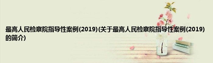 大家好,最高人民检察院指导性案例,2019,关于最高人民检察院指导性案例,2019的简介很多人还不知道,现在让我们一起来看看吧!