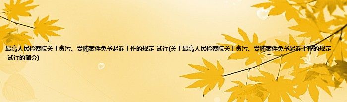 大家好,最高人民检察院关于贪污、受贿案件免予起诉工作的规定 试行,关于最高人民检察院关于贪污、受贿案件免予起诉工作的规定 试行的简介很多人还不知道,现在让我们一起来看看吧!