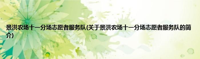 大家好,景洪农场十一分场志愿者服务队,关于景洪农场十一分场志愿者服务队的简介很多人还不知道,现在让我们一起来看看吧!