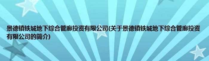 本文关于景德镇铁城地下综合管廊投资有限公司的简介就讲解完毕,希望对大家有所帮助。