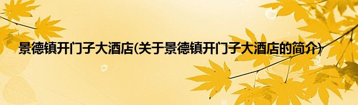 本文关于景德镇开门子大酒店的简介就讲解完毕,希望对大家有所帮助。