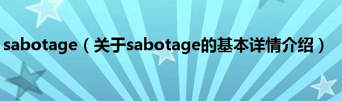 本文关于sabotage的基本详情介绍就讲解完毕,希望对大家有所帮助。