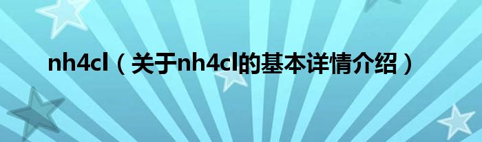 本文关于nh4cl的基本详情介绍就讲解完毕,希望对大家有所帮助。