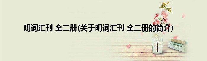 本文关于明词汇刊 全二册的简介就讲解完毕,希望对大家有所帮助。
