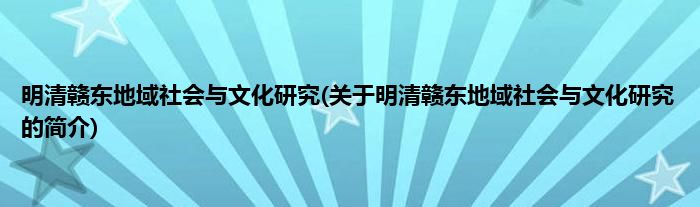 本文关于明清赣东地域社会与文化研究的简介就讲解完毕,希望对大家有所帮助。