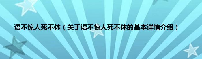 本文关于语不惊人死不休的基本详情介绍就讲解完毕,希望对大家有所帮助。