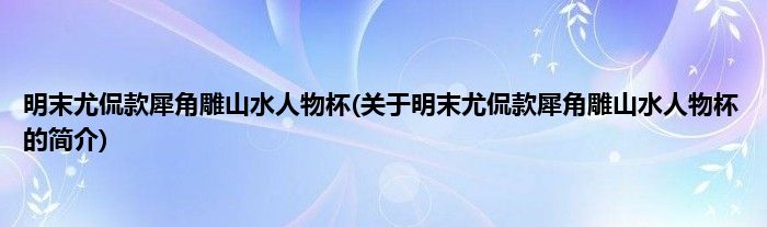 本文关于明末尤侃款犀角雕山水人物杯的简介就讲解完毕,希望对大家有所帮助。