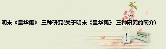 本文关于明末《皇华集》 三种研究的简介就讲解完毕,希望对大家有所帮助。