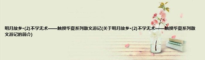 本文关于明月故乡·(2)不学无术——触摸华夏系列散文游记的简介就讲解完毕,希望对大家有所帮助。