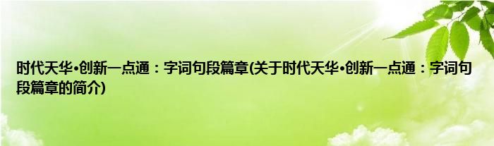 本文关于时代天华·创新一点通:字词句段篇章的简介就讲解完毕,希望对大家有所帮助。