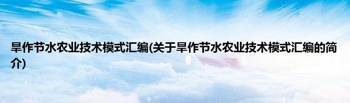 本文关于旱作节水农业技术模式汇编的简介就讲解完毕,希望对大家有所帮助。