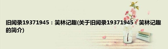 旧闻录19371945:笑林记趣(关于旧闻录19371945:笑林记趣的简介)