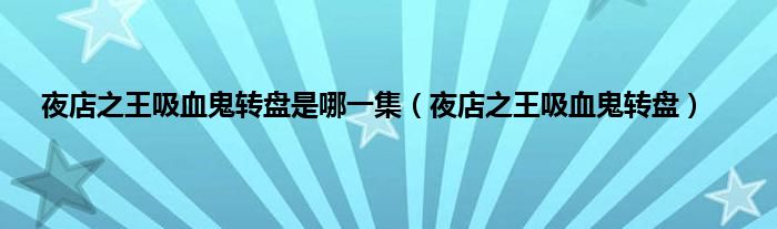 大家好,精选小编来为大家解答以上问题。夜店之王吸血鬼转盘是哪一集,夜店之王吸血鬼转盘很多人还不知道,现在让我们一起来看看吧!