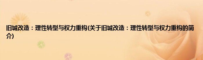 本文关于旧城改造:理性转型与权力重构的简介就讲解完毕,希望对大家有所帮助。