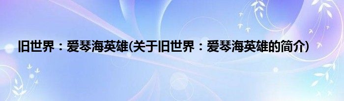 大家好,旧世界:爱琴海英雄,关于旧世界:爱琴海英雄的简介很多人还不知道,现在让我们一起来看看吧!