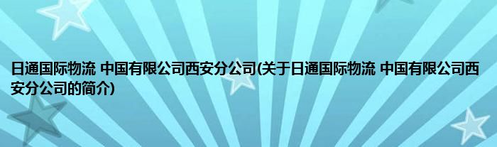 本文关于日通国际物流 中国有限公司西安分公司的简介就讲解完毕,希望对大家有所帮助。