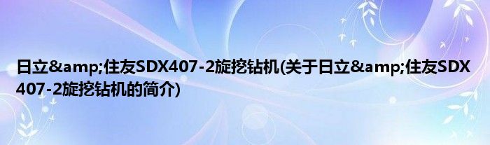 本文关于日立&住友SDX407-2旋挖钻机的简介就讲解完毕,希望对大家有所帮助。