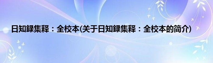 本文关于日知録集释:全校本的简介就讲解完毕,希望对大家有所帮助。