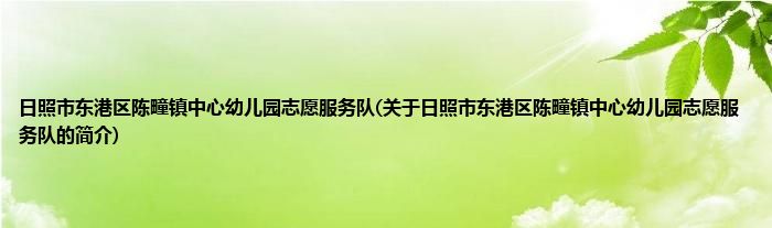 本文关于日照市东港区陈疃镇中心幼儿园志愿服务队的简介就讲解完毕,希望对大家有所帮助。