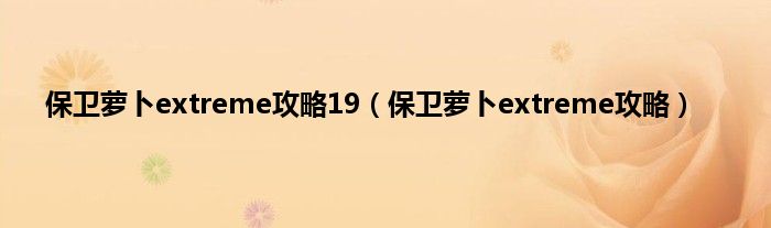 大家好,精选小编来为大家解答以上问题。保卫萝卜extreme攻略19,保卫萝卜extreme攻略很多人还不知道,现在让我们一起来看看吧!